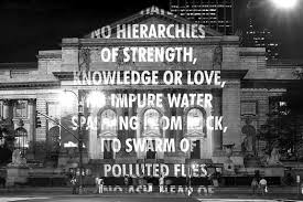 "I show what I can with words in light and motion in a chosen place and when I envelop the time needed, the space around, the noise, smells, the people looking at one another and everything before them, I have given what I know." Jenny Holzer